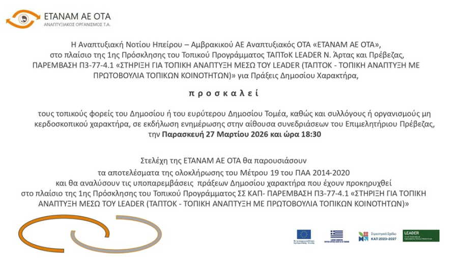 Ενημερωτική εκδήλωση από την ΕΤΑΝΑΜ για το πρόγραμμα LEADER